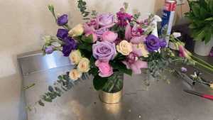 Very Berry Blumes is a pretty and lush bouquet selection with lots of high end blooms. We’ve designed this bouquet with colors in the berry palette and flowers such as hydrangea, roses, ranunculus, lisianthus and orchids. The bouquet is designed in a gorgeous clear glass vase with gold honeycomb detailing at the bottom. Receiving this stylish gift is sure to cheer and celebrate the recipient. This bouquet has a feminine feel and is great to gift to moms, best friends or a sister.